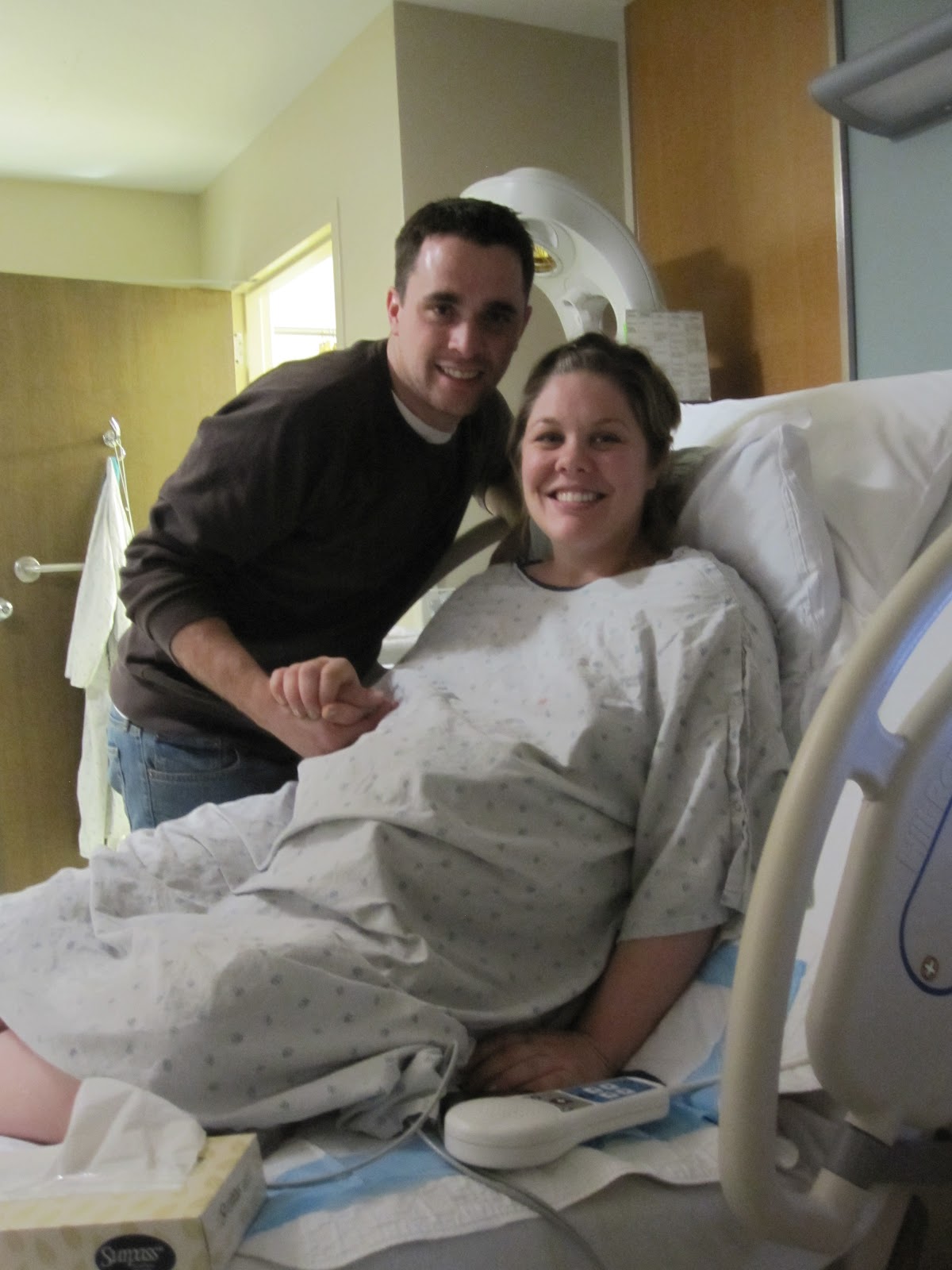 I was on a monitor for quite a few hours because Sam’s heartbeat wasn’t where they wanted it to be. My nurse kept saying, “It’s good, but we’re going for awesome.” =) It never quite got to awesome but I desperately wanted to get out of the bed and walk around. Finally the nurse was satisfied, and I got up.