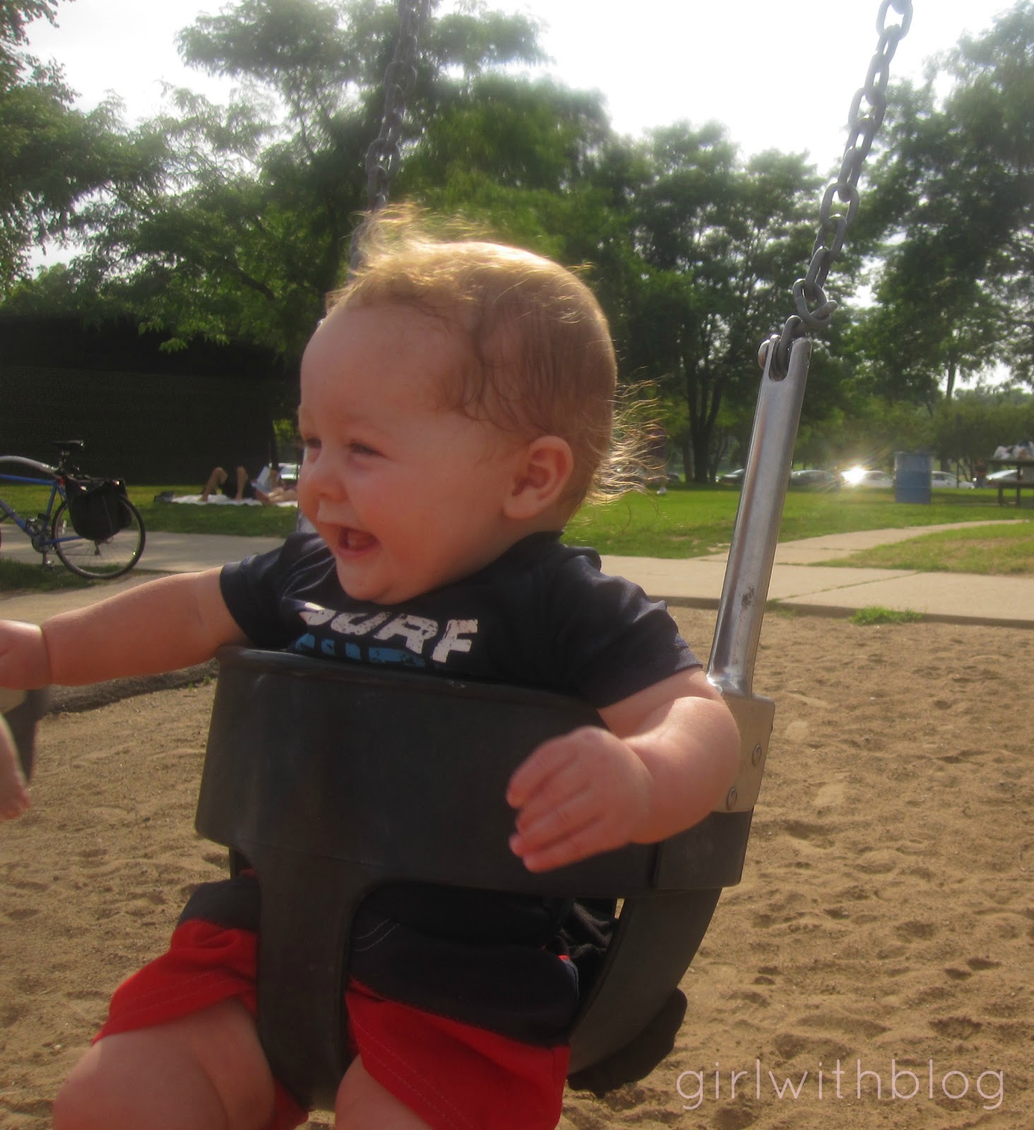 He adores outside, swimming, and most recently was introduced to the swings.
